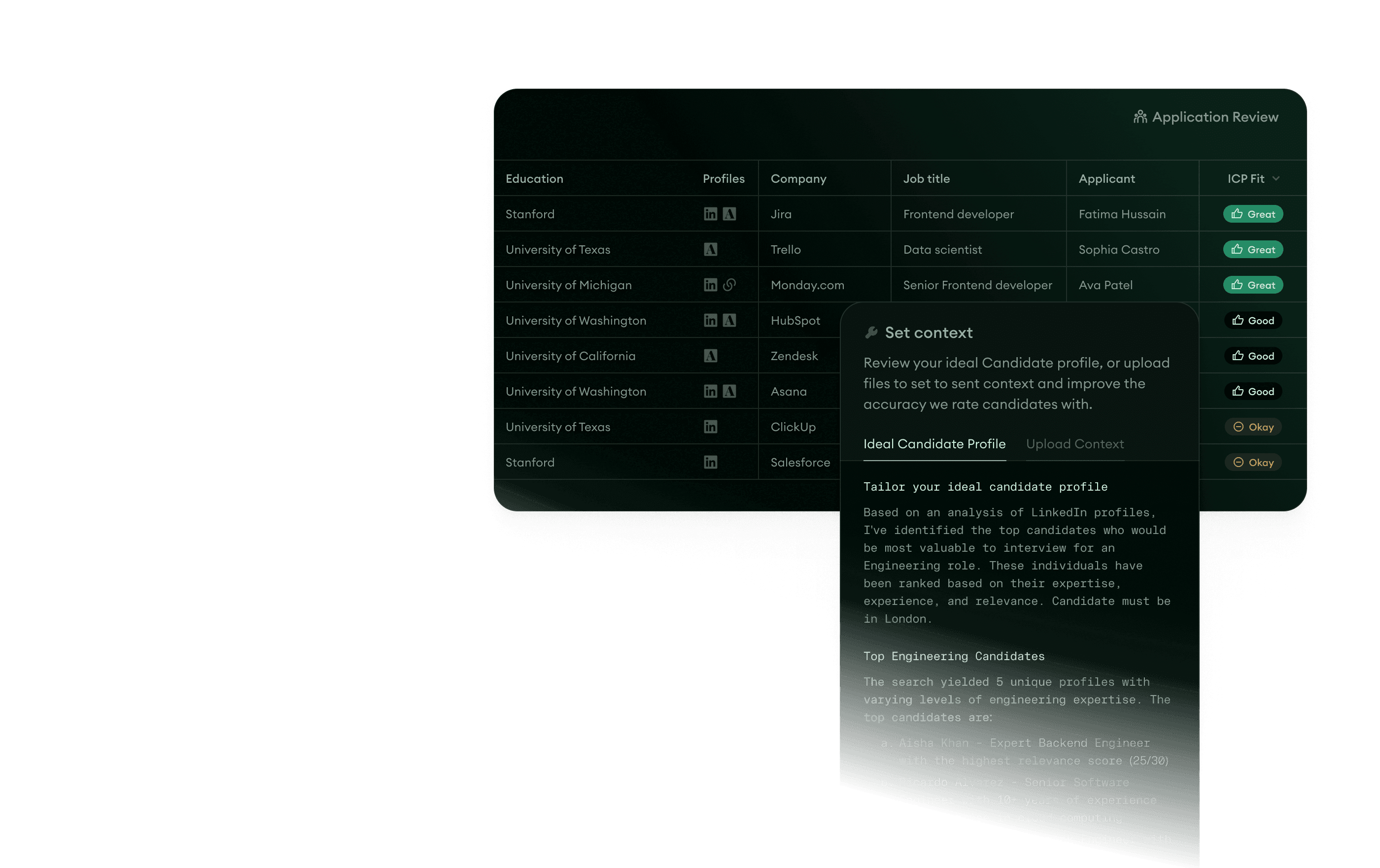 A curated list of candidates automatically matched to your intake criteria and interview plan.