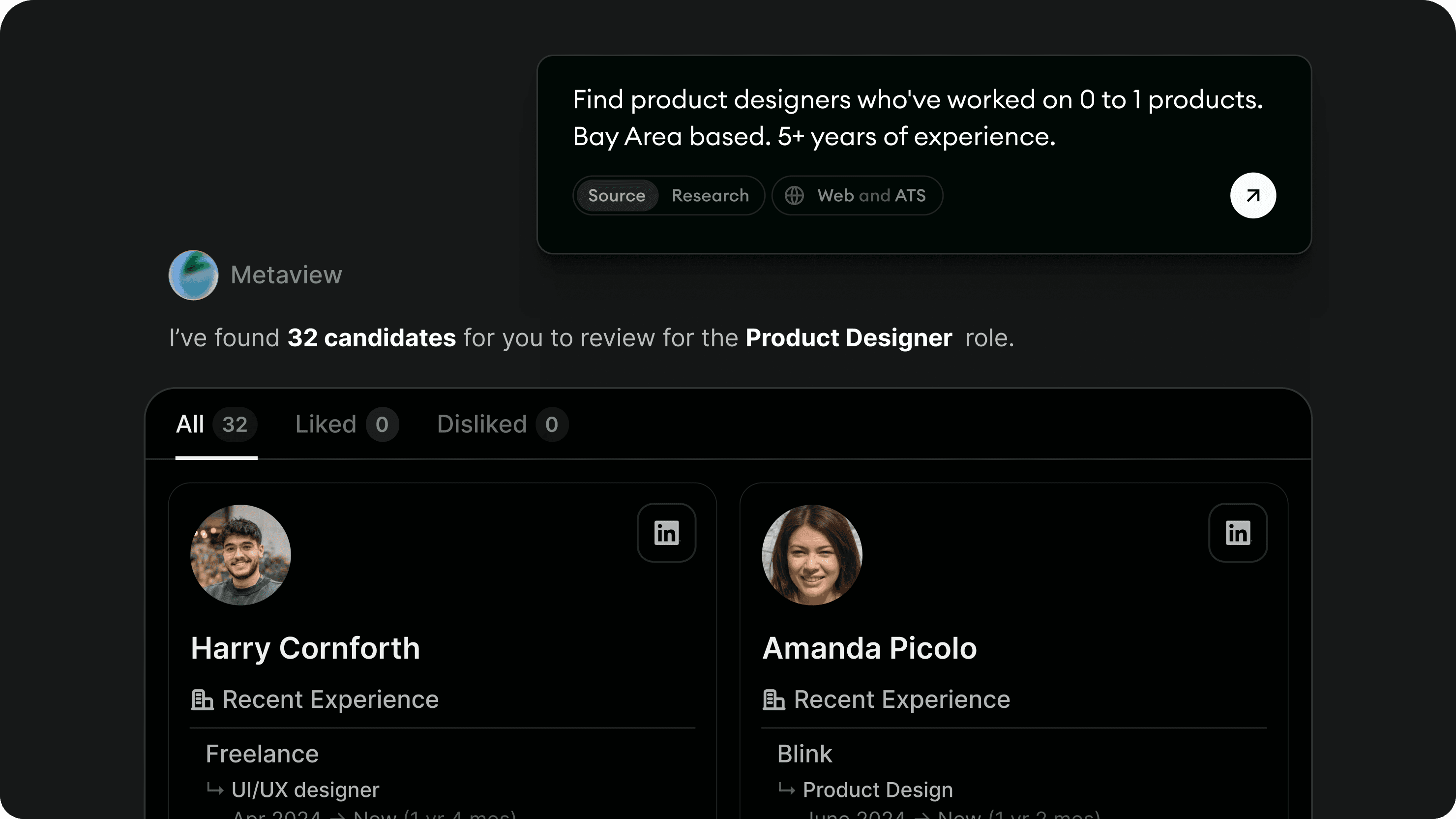 Metaview is the Agentic Recruiting Platform built for radically efficient hiring, end to end. Source, engage, and hire better with agents that truly get your brief.