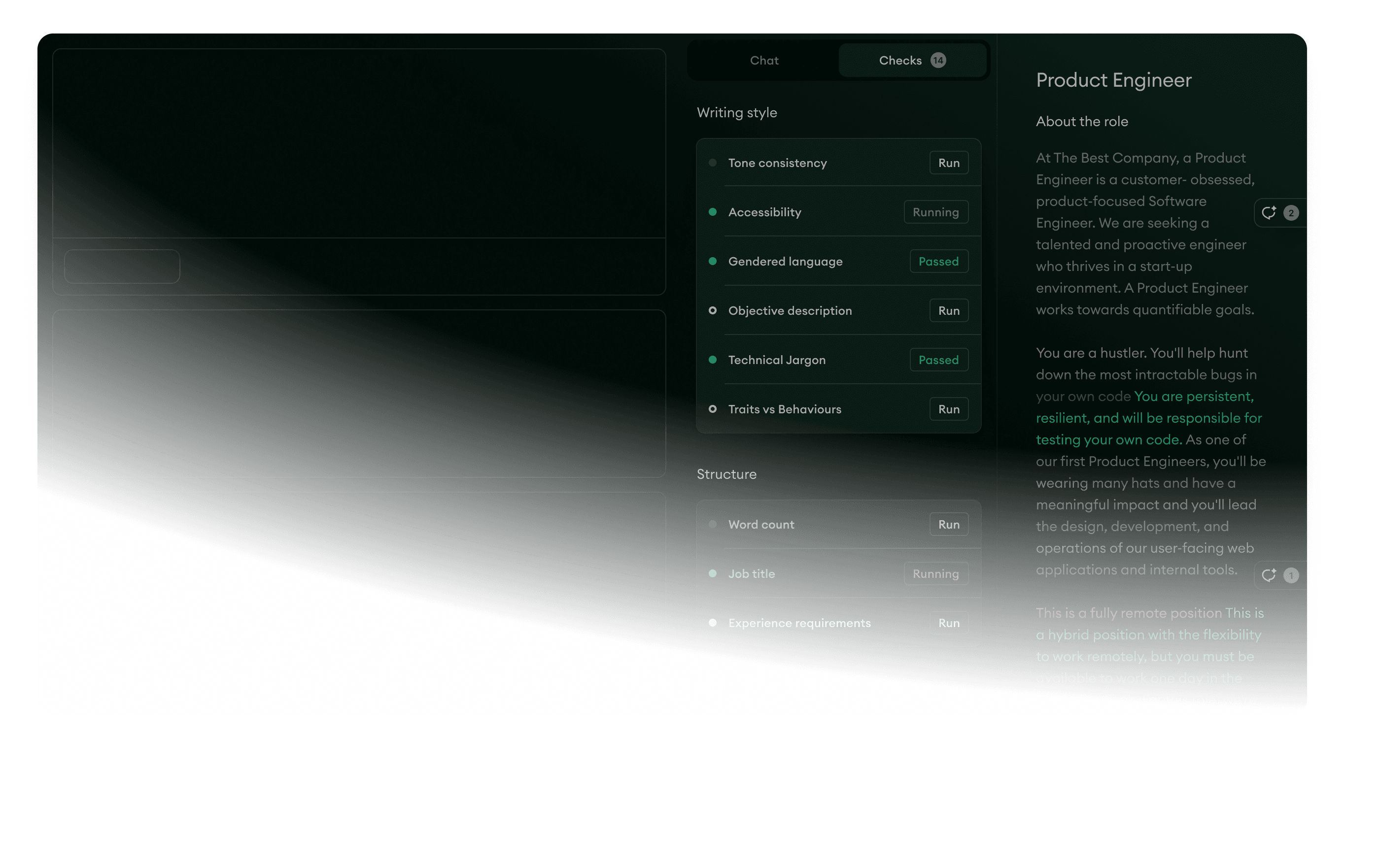Perfect recruiting notes, totally configurable to your hiring workflow, and grounded in the context of the hire you're making.
