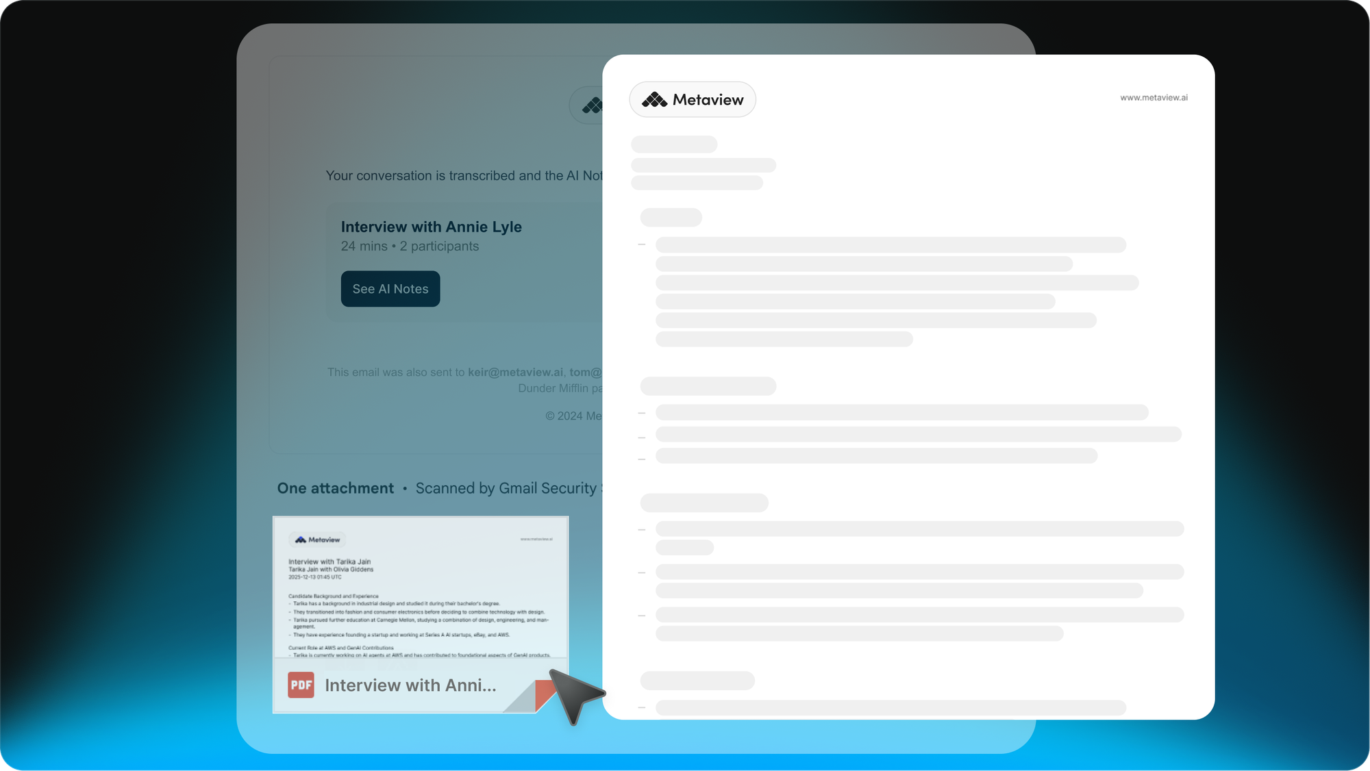 Receive a PDF copy of your AI interview notes directly in your inbox after each call, as soon as they’re ready.