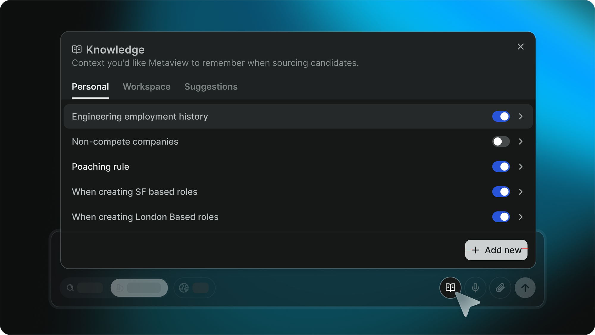 Last month, we introduced workspace-level knowledge to help AI Sourcing reflect shared team preferences. Now, we’ve taken it a step further with personal knowledge settings.