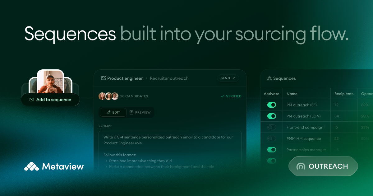 Metaview Outreach: Candidate sequences built into your sourcing flow