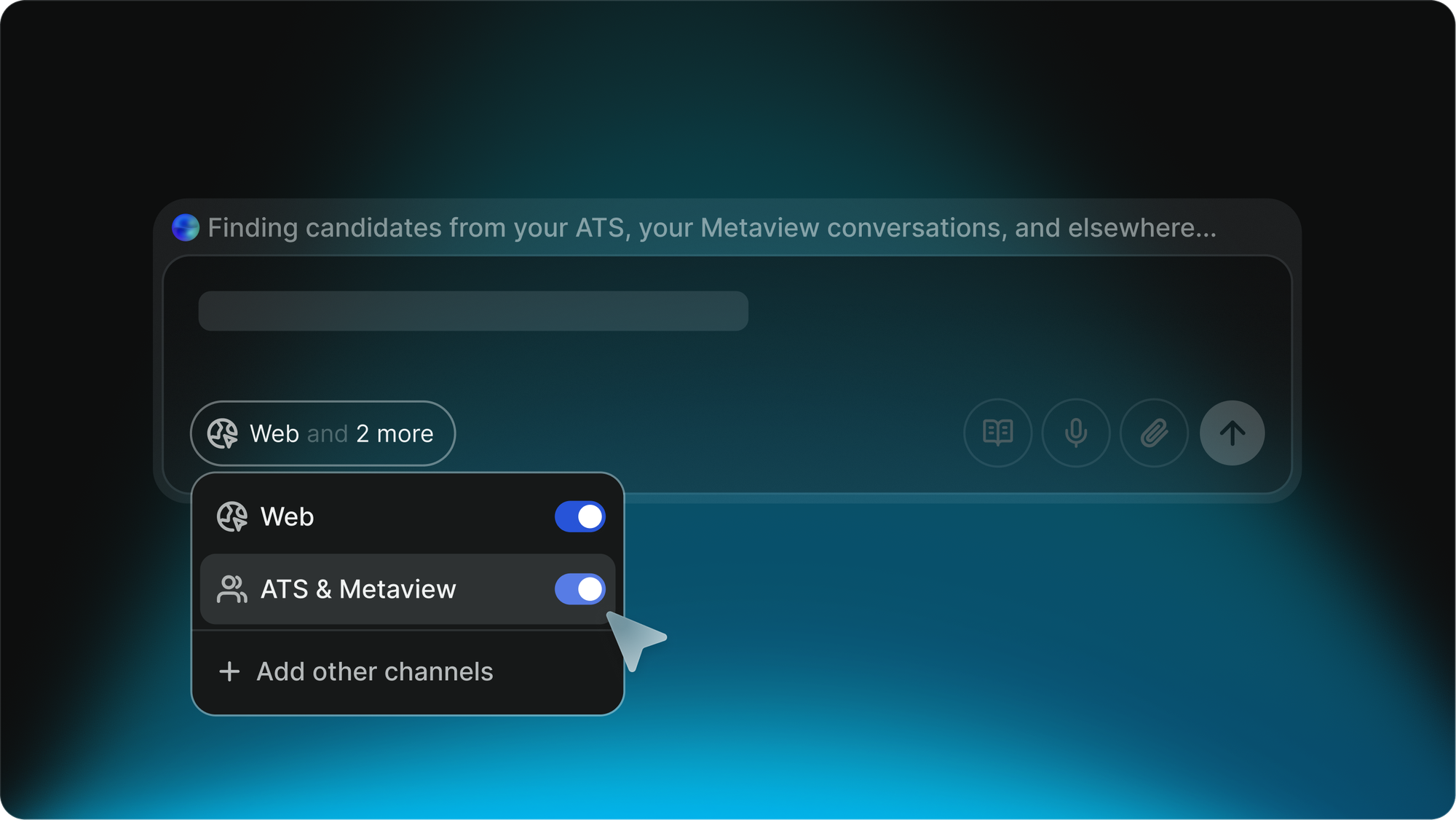 When you enable Metaview and your ATS as a source, your searches go beyond CVs and titles. You can now search across what candidates actually say in interviews, including their motivations, career goals, concerns, and other insights.